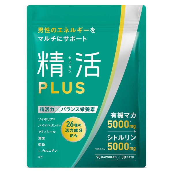 精活PLUS 妊活 サプリ 男性妊活サプリ マカ シトルリン 高配合 亜鉛 葉酸 特許成分 男性のエネルギーサポート 26種類の活力成分 90粒 30日分 3袋