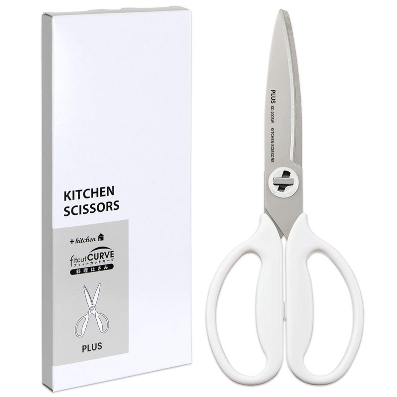 Plus 35728 Kitchen Scissors, Cooking Scissors, Disassembly, Dishwasher Safe, Fitted Cut Curve, Mushroom White, Paper Box Packaging