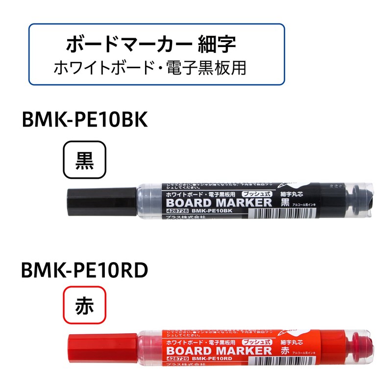 PLUS BMK-PE10BK 428-728 Dry Erase Markers, Fine Point, Line Width 0.04 inch (1 mm), Black, Pack of 10, Black x 10