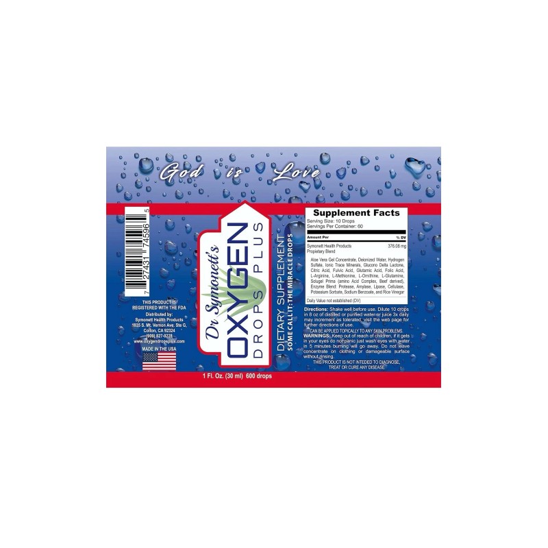 Dr. Symonett's OXYGEN DROPS PLUS.