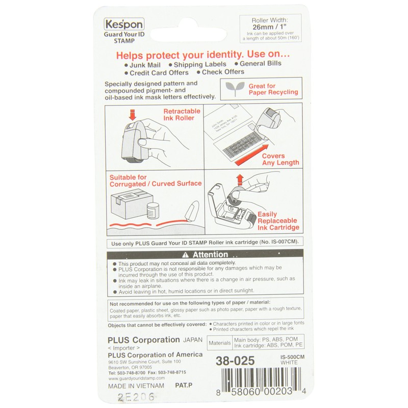 The Guard Your ID Roller Stamp easily and permanantly covers up your printed personal information on junk mail, credit card offers, documents and packages in one swipe