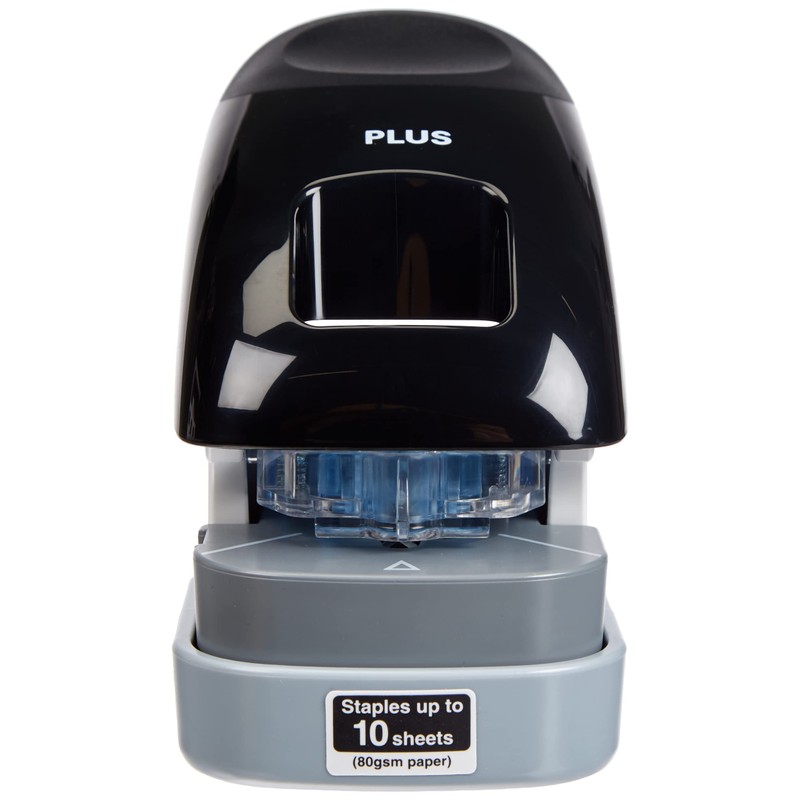 PLUS Japan, Staple-Free Stapler Desktop Model Black, 10 Sheet stapling Capacity, 1 Piece Pack (1 x 1 Stapler)