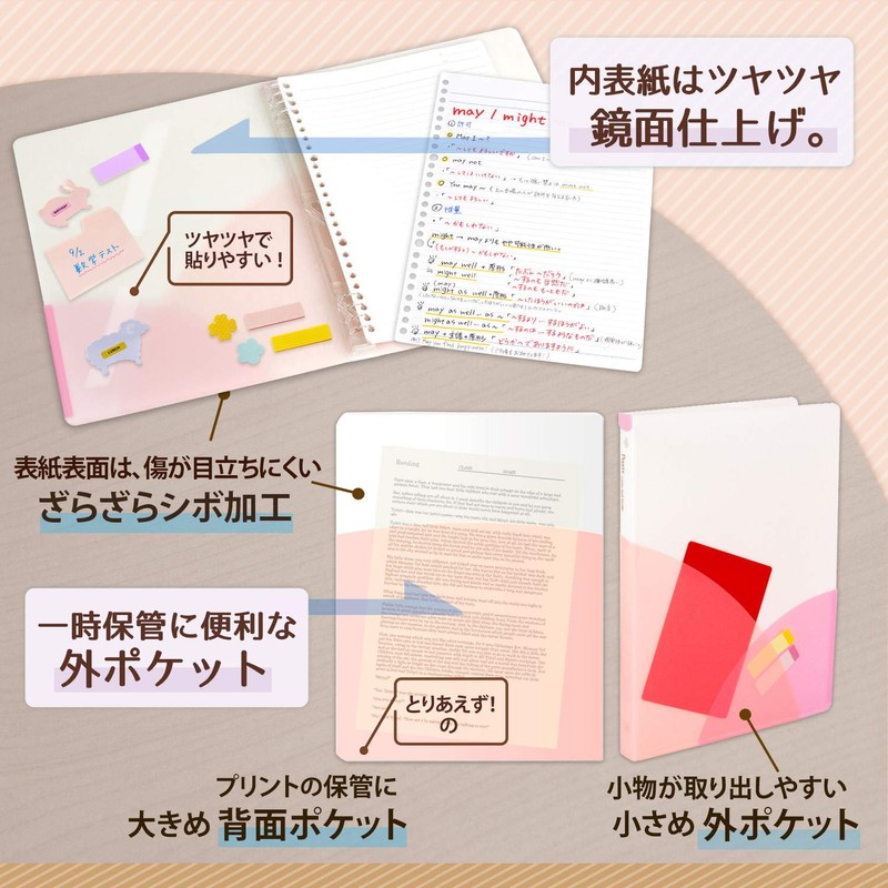 - The design on the front cover has an exterior pocket that is convenient for storing and carrying around small items. Round-corner design prevents damage to the surroundings. The interior cover has a glossy polished finish that allows you to attach sticky notes to it,