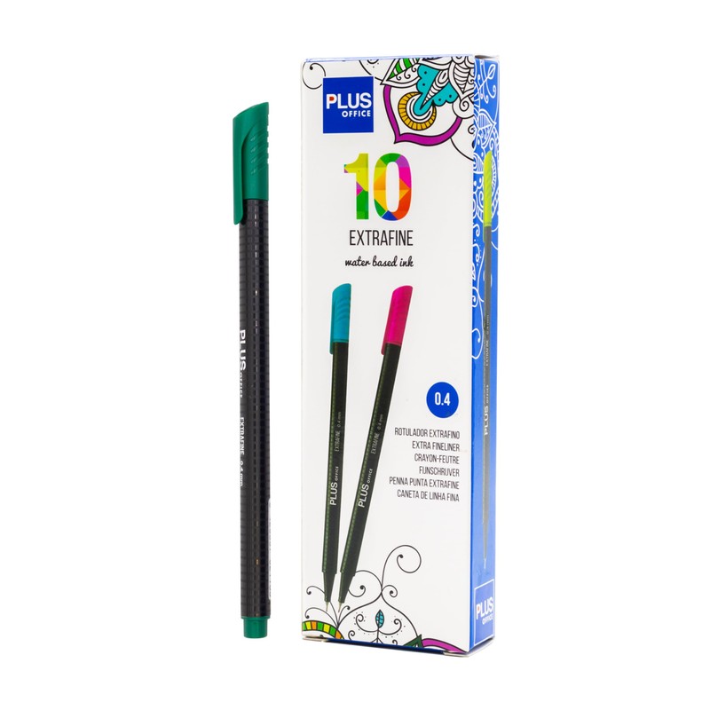 Plus Office 10 Fine Tip Felt Tip Pens 0.4mm Ideal for Writing, Painting and Drawing, School Pens with Fine Tip, Colourful Water Based Ink (Pine Green)