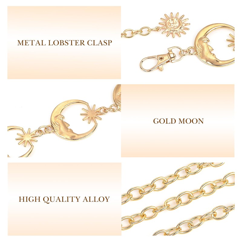 Plus Size Chain Belt for Women, 2 Pack Metal Chain Belt Women Belly Waist Chains, Extra Long Body Chain, 51.2 Inch Adjustable Chunky Belt Chain (Moon Style)