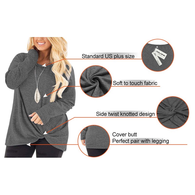 • 【Simple-yet-Classic Design】This Women's Plus Size Tops adopts a side twist knotted detail in the hem, basic but unique design that could well cover your hips and belly, which is your must-have top in wardrobe