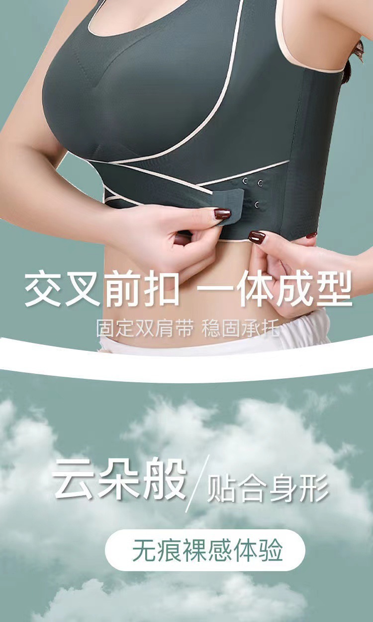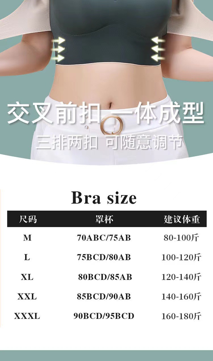 Plus Size Wireless Front Button Sports Bra - Seamless, Back Support, Posture Correction, Thin Design Green/XL (120-140 geun) 2ea