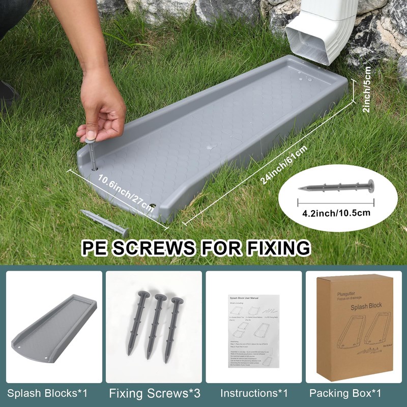- 【 PACKING LIST & SERVICES 】: 1 x downspout splash block, 3 x PE nails (extra one nail as a backup). We are committed to providing customers with excellent products and services, please let us know if you have any questions or need assistance