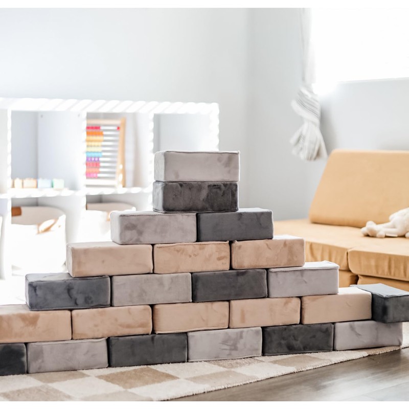 - A Unique Take on Building Blocks - Expand your kid's toy collection with these one-of-a-kind stackable blocks! Made of foam wrapped in luxurious soft fabric, they're huggable, step-on-able, and even throw-able!