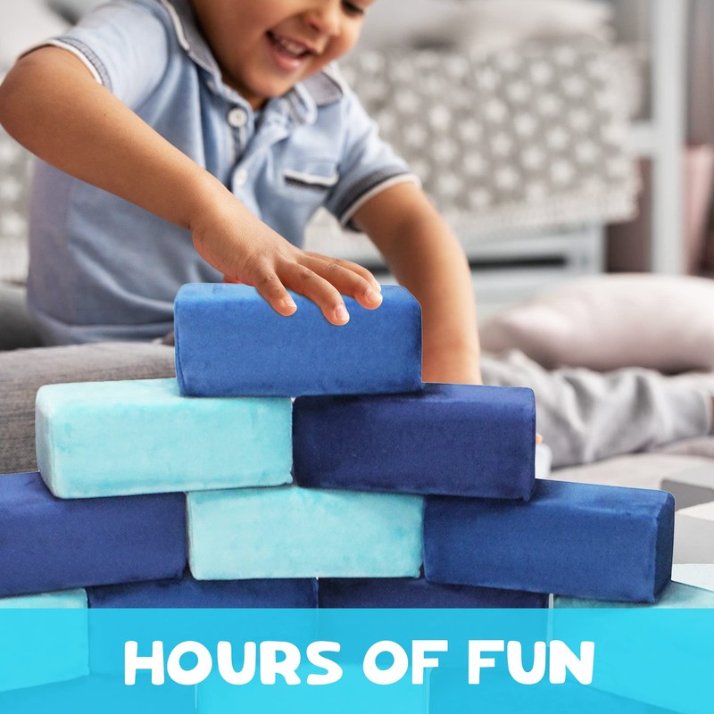 Plush Blocks Set of 24 Soft Building Blocks for Kids - Fabric Covered Toy Foam Blocks for Stacking, Play Time, Making Structures - Promotes Gross Motor Skills - 8.25x4.25x3 (Ocean)