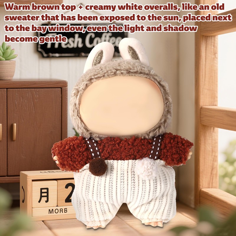 Plush Doll Clothes Set, Stylish Brown Top & Small Fur Balls Overalls Funny Do...
