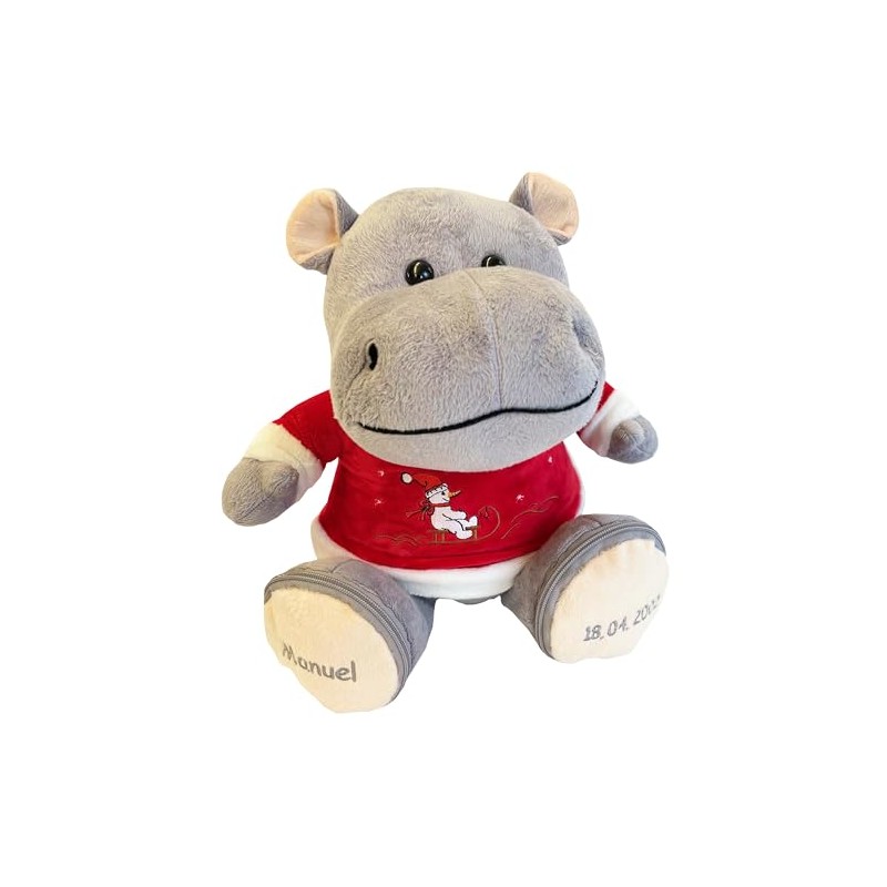 Plush Hippo Hippo with Christmas Jumper Embroidered, Cuddly Stuffed Toy with Your Own Data, Gift for Christmas Desired Name, Cuddly Personalised Hippo, Plush Toy, Teddy Individual