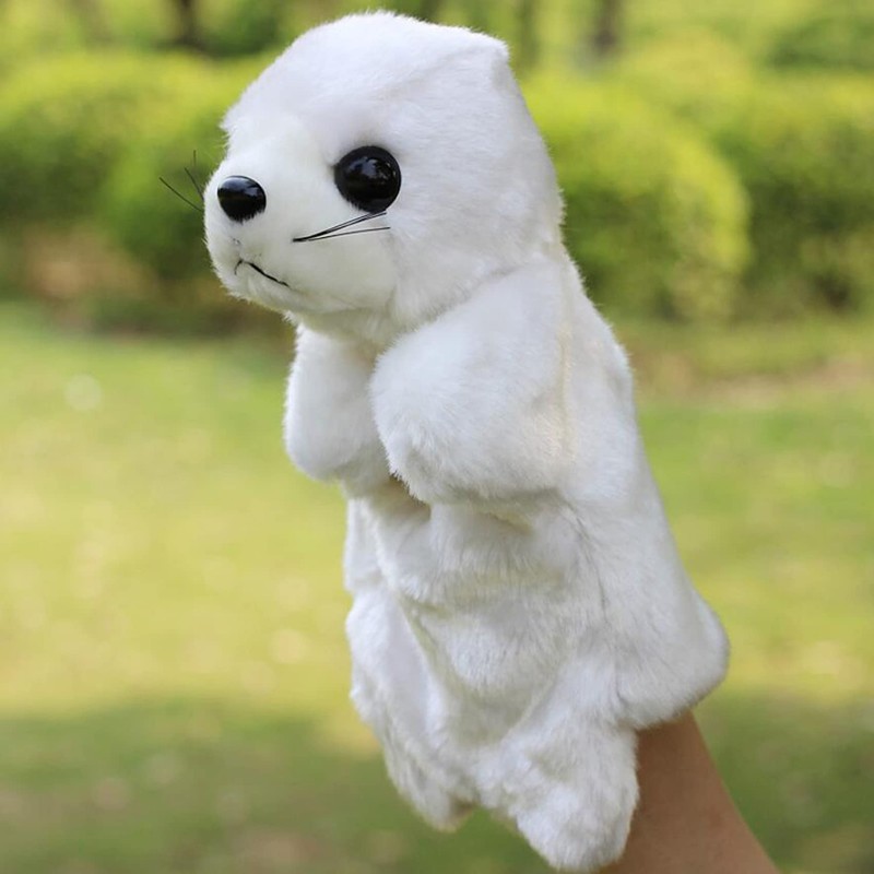 Plush Seal Hand Puppets Stuffed Ocean Animals Toys for Kids Imaginative Pretend Play Storytelling White