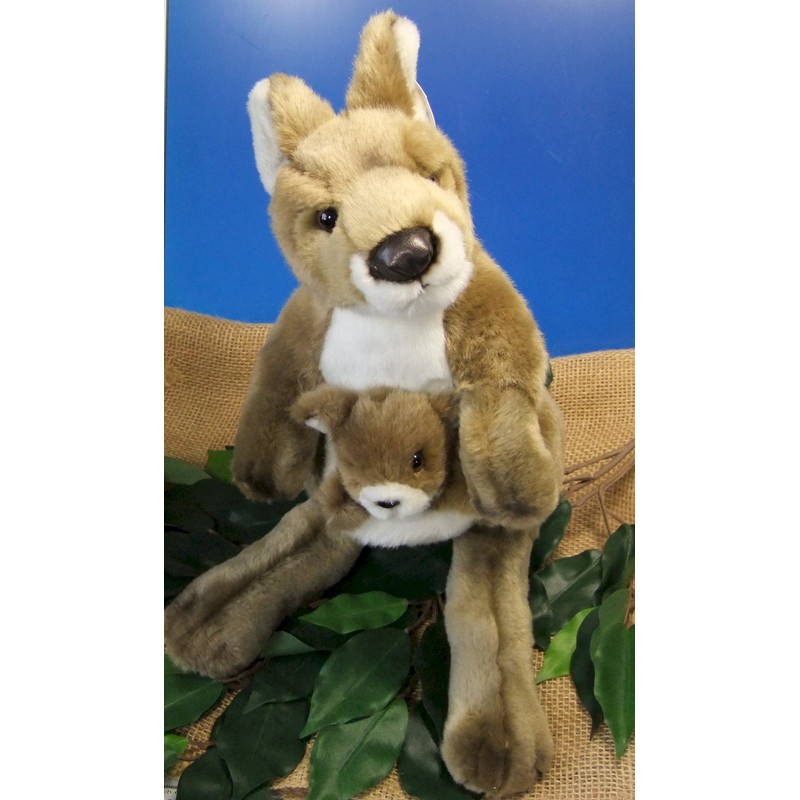 Plush Soft Toy Kangaroo with Baby – Stand – Brown – 40 cm