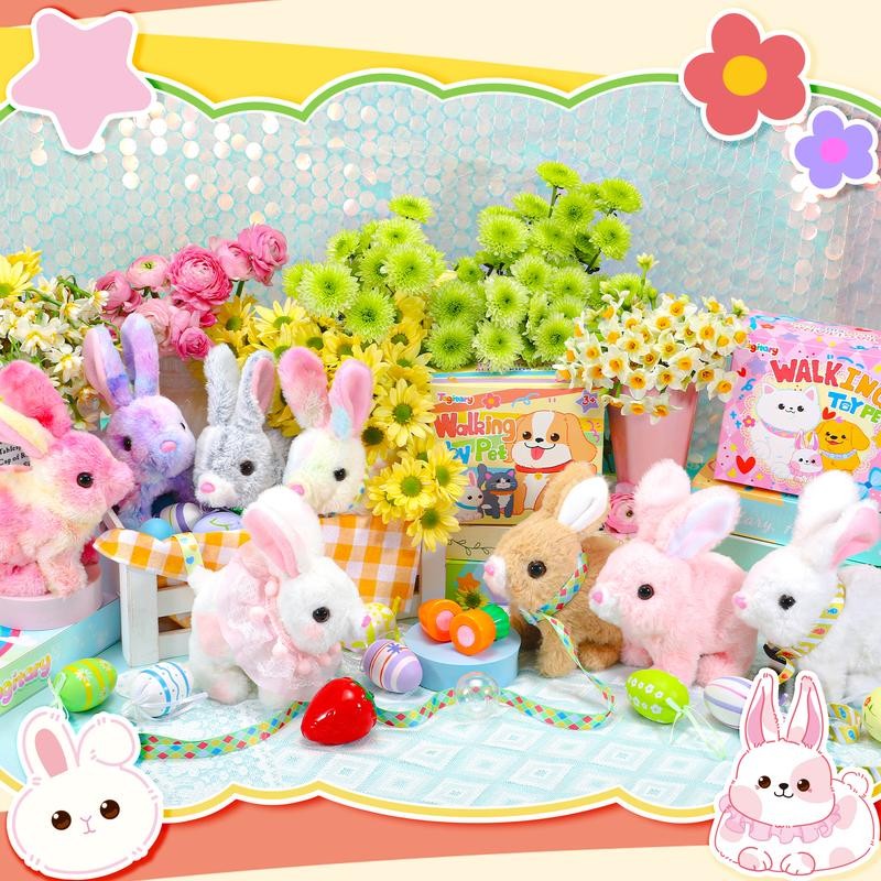 Plush Toys Electronic Toy with Sounds,Wiggling Ears,Twitching Mouth and Nose, Interactive Rabbit Toy with Leash,Easter Christmas Birthday Gift:_white