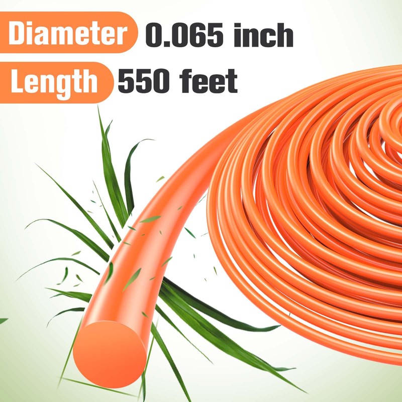 PLUSINTO String Trimmer Line .065", 550 Feet Weed Eater String, Round Trimmer Line for Universal Replacement, Orange Premium Nylon String Trimmer Line for Light Grass&Weeds