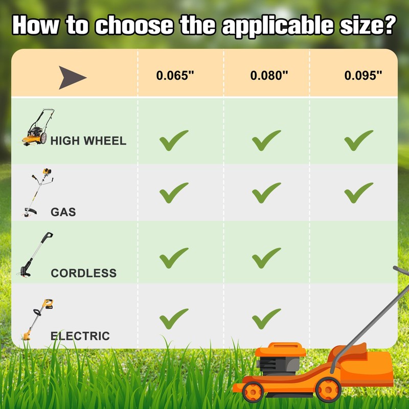 - [Round Shape Line and Variety of Choices] - The most popular trimmer line shape. More durable and longer lasting than square trimmer line. And the weed eater string has different lengths and diameters, choose to suit your needs.