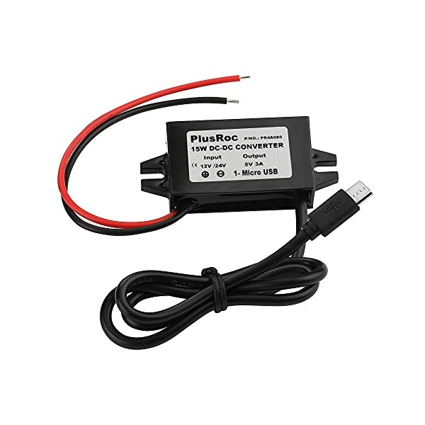 PlusRoc Waterproof 12V/24V to 5V Converter DC-DC Step Down Module Power Adapter Compatible with Ring Keypad, Cellphone, Car (Micro USB Connector)