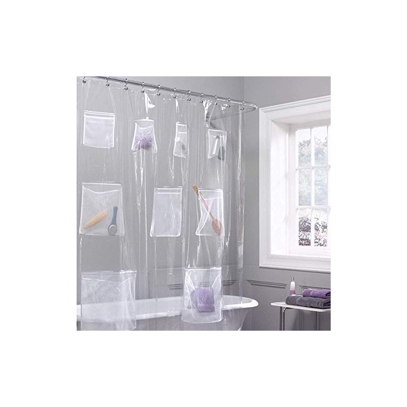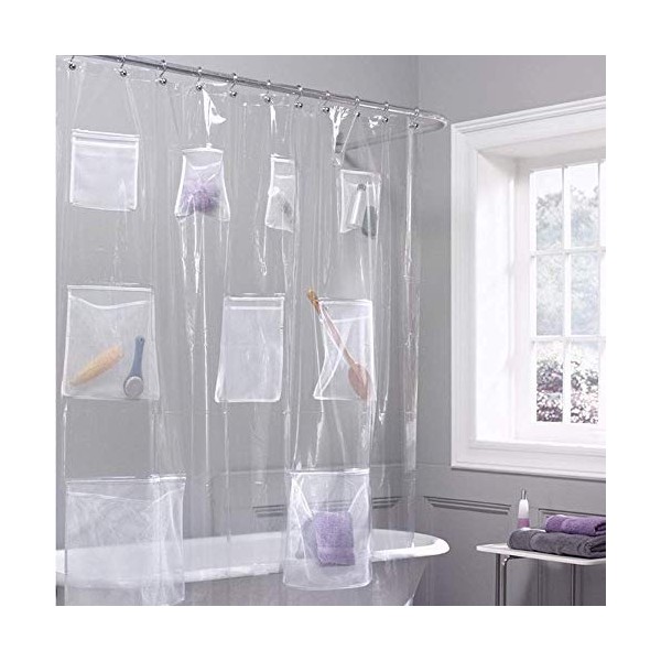 Plutreas Shower Curtain Liner with 9 Pockets, 72in x 72in (Clear)