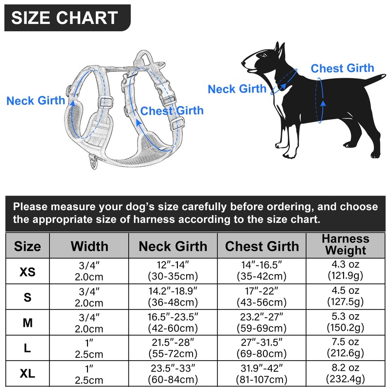 - Fully Adjustable for All Sizes. This adjustable dog harness is designed to fit dogs of various sizes comfortably. It offers multiple adjustment points for a customized escape-proof fit, ensuring your dog stays secure without feeling restricted.