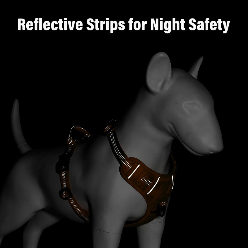- Reflective Strips for Night Safety. Keep your dog safe during nighttime walks with the reflective strips on this harness. The reflective dog harness enhances visibility in low-light conditions, making sure your puppy is seen and safe at all times.