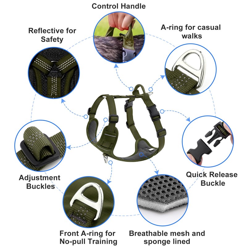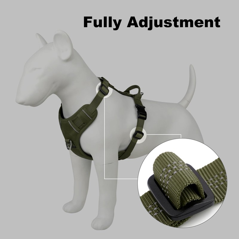 Plutus Pet No Pull Dog Harness, Reflective Adjustable Dog Vest Harness with Handle, Escape Proof, Soft Padded for Small Medium Large Dogs (Ranger Green, L)