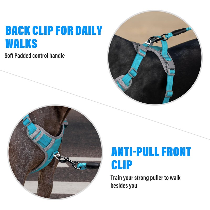 Plutus Pet No Pull Dog Harness, Release At Neck, Reflective Adjustable Dog Vest Harness, Easy Control Handle for Walking, for Small Medium Large Dogs, Cyan, M