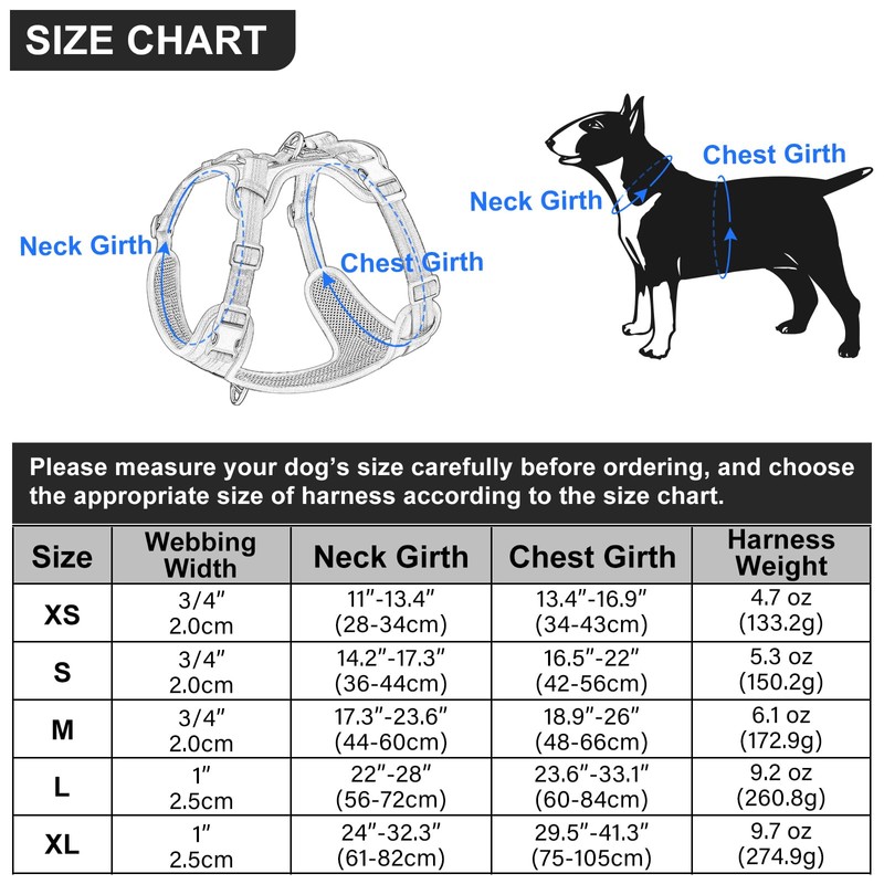 With two sturdy D-rings for leash attachment, you can switch between a ring for daily walking and another for no-pull training to encourage good behavior. Complete with all the features needed for walking and training, this heavy-duty dog harness offers durability, comfort, and added safety for your peace of mind.