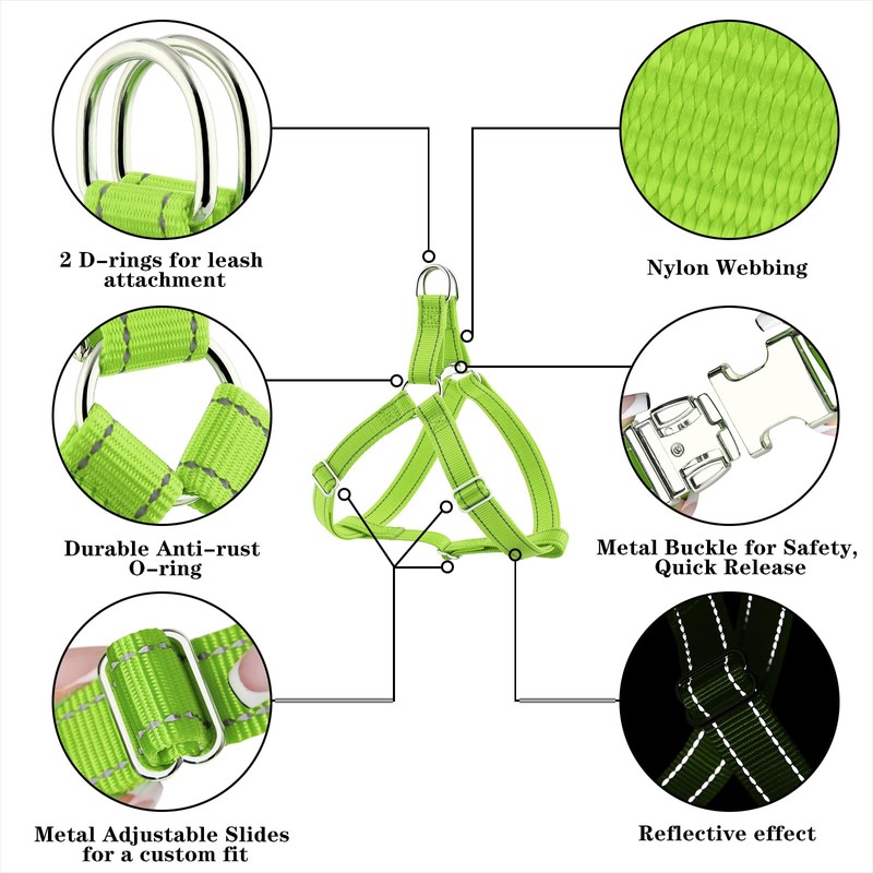 Plutus Pet Step in Dog Harness, Reflective, Adjustable, and Secure with Metal Buckles, Quick Fit Dog Harness for Puppy, Small, Medium and Large Dogs, Green, M