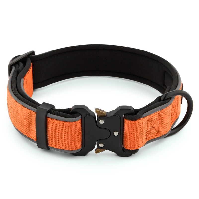 Plutus Pet Tactical Dog Collar, Reflective, Adjustable Heavy Duty Dog Collar, Soft Padded and Comfortable, for Small Medium and Large Dogs (Orange, XL)