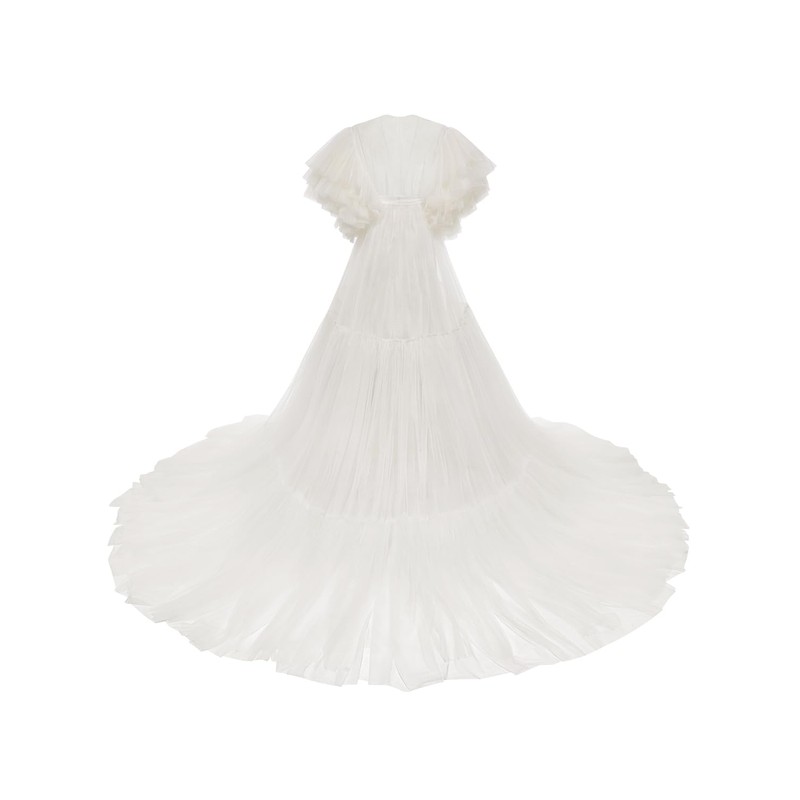 PLUVIOPHILY Maternity Tulle Dress Robe for Photoshoot Baby Shower Photography Ivory
