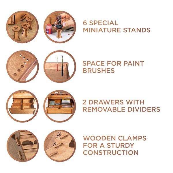 - Easy to assemble C In the package you will find details of the wooden Vallejo paint storage rack that should be assembled and step-by-step instructions. Our advantage is that the wooden paint brush holder is assembled without glue, and wooden fasteners are included in the set, so the finished construction of Citadel paint rack will be sturdy and durable. We are also convinced that the process of assembling Plydolex paint station can also be a fascinating DIY activity!