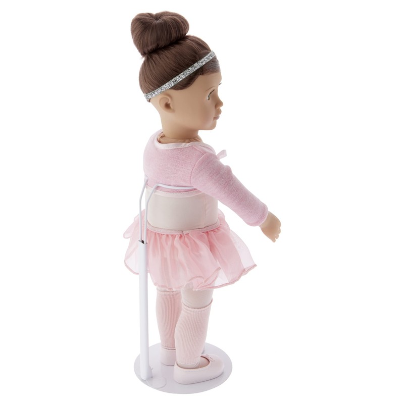 - WAIST HEIGHT: Stand height adjusts from 9 - 13 inches to fit 15-21 inch dolls BASE DIAMETER: 5.375 inches