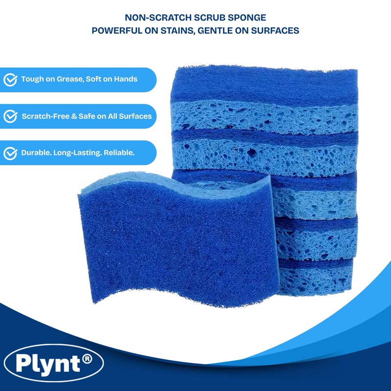 Plynt - Zero Scratch Scrub Sponge, Pack of 12 Sponges for Dishes, Kitchen & Bathroom, Zero Scratch, Multi-Surface Safe, Cleans Fast, Tackles Tough Messes, Safe for Nonstick Pots & Pans