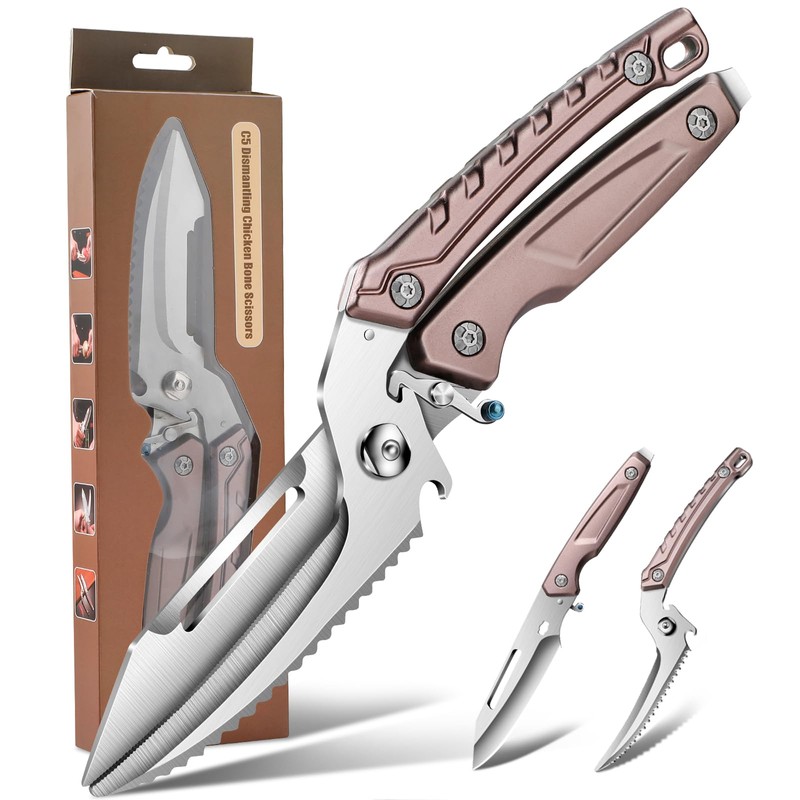The razor-sharp blades make it effortless to cut bone, chicken, turkey, and various meats.