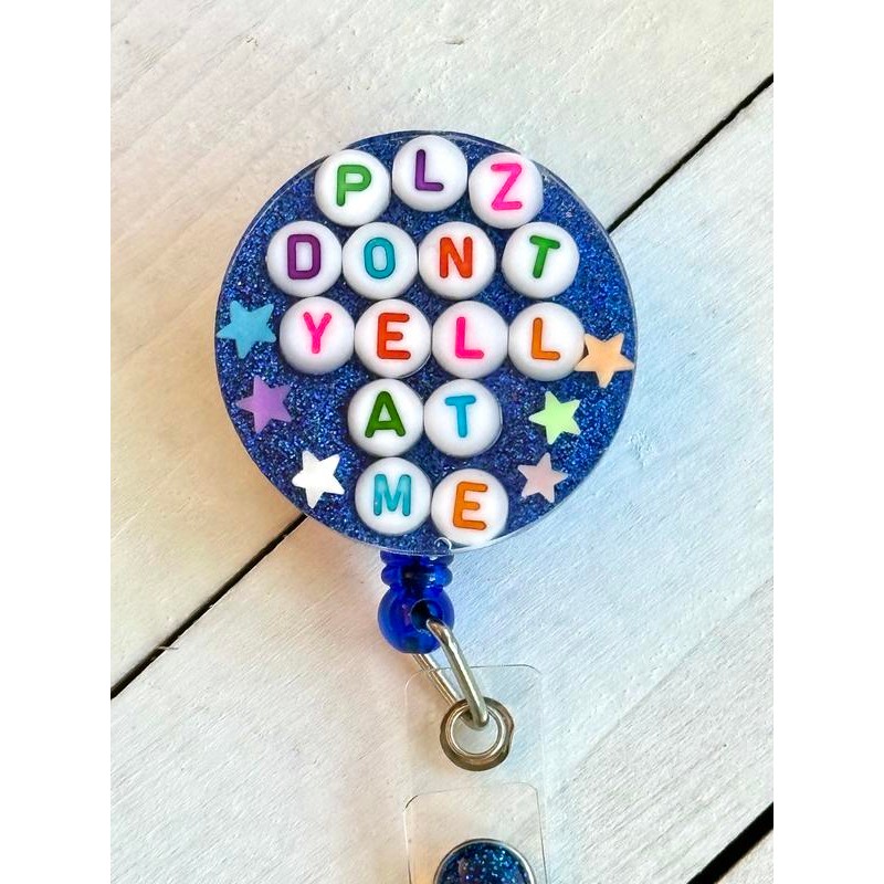 Brighten up your workday with our Handmade Resin Badge Reel, featuring a playful "Plz Don’t Yell at Me" written in letter beads accented with cute stars to make it really stand out! This fun and functional accessory is perfect for adding a touch of personality to your daily routine.