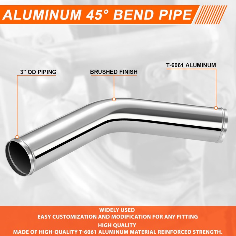 - [Product Info] Come with 1 x Aluminum 45 Degree Bend Pipe, Piping Diameter - 3" OD, Wall Thickness - 9-gauge, Surface Finish - Brushed Finish