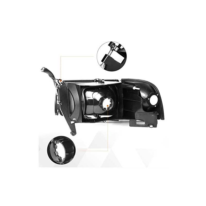 • 【Excellent Material】For 94-01 Ram 1500, 94-02 Ram 2500/Ram 3500 headlamps are made of ABS Plastic and Polycarbonate Lens, ensuring exceptional impact resistance and prolonged durability.