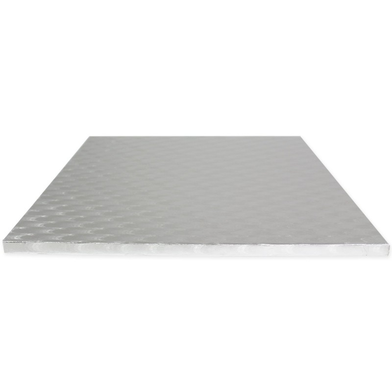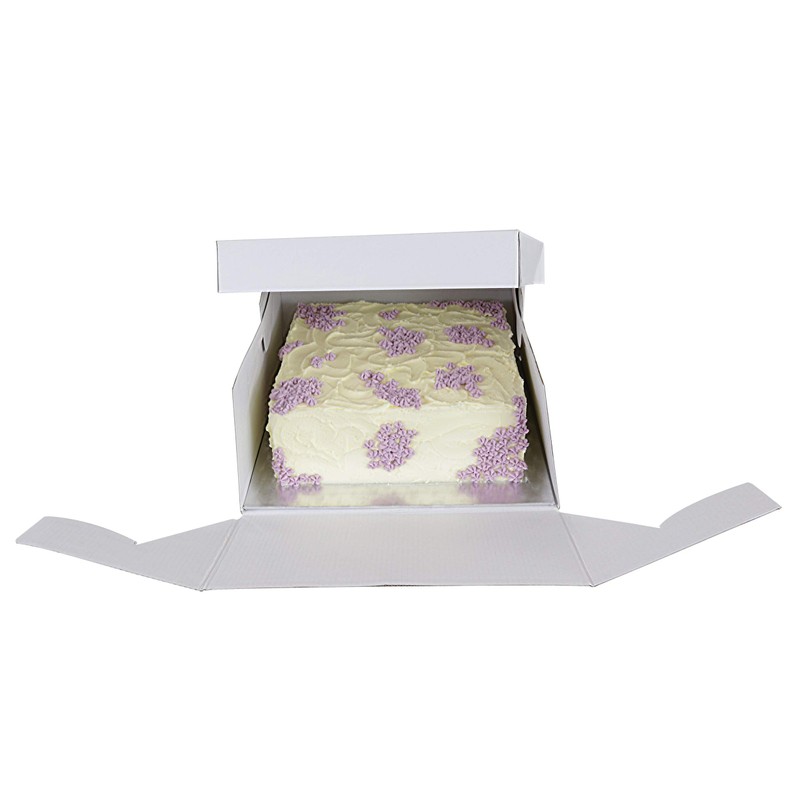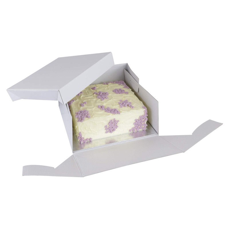 Finished with a hygienic metallic coating this cardboard cake card is perfect for the base of any celebration cake, gateaux or for use in-between stacked cakes. The easy to put together box comes with side tabs that fold up and slot into the side panels and comes with a ready to pop up lid. The card and box are shrink wrapped together in clear packaging for protection and comes with clear metric/imperial measurements.