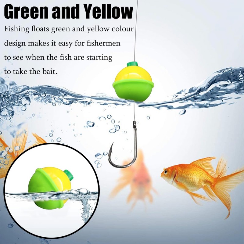 PmLwakiR 20 Pcs Fishing Snap On Floats Bobbers 5 Size Various Weights Push Button Sea Carp Hard ABS Push Button Fishing Round Buoy Float (Yellow and Green)