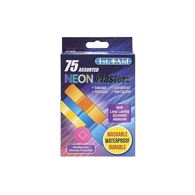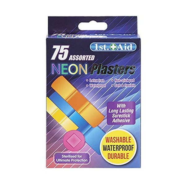 PMS 1st Aid - Washable Waterproof Sterilised Assorted Neon Plasters - Pack of 75