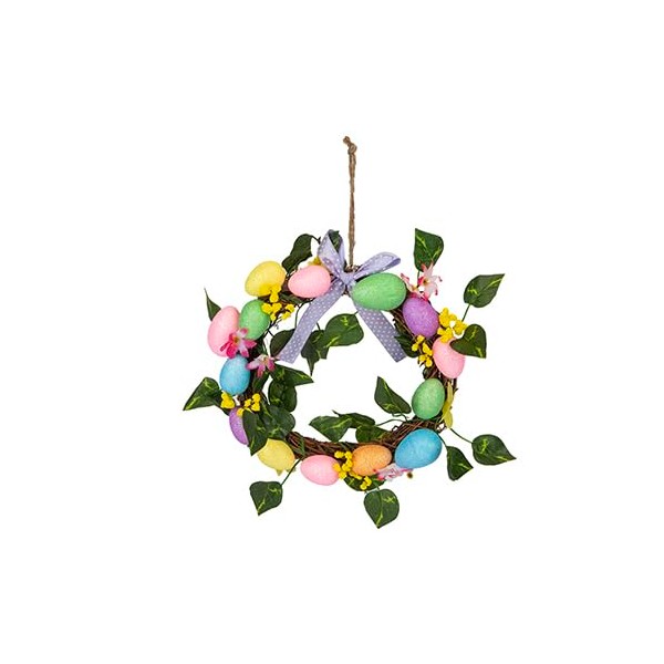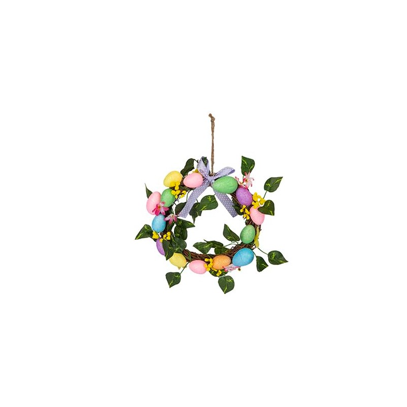 PMS 20cm Easter Egg Wreath – Spring Hanging Decoration with Pastel Eggs, Flowers & Foliage – Perfect for Easter Home Décor & Gifting