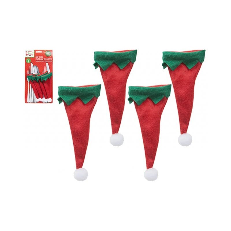 - PACKAGE INCLUDES: 4 pc of Elf hat cutlery holders, Complete with green trim and pom pom.