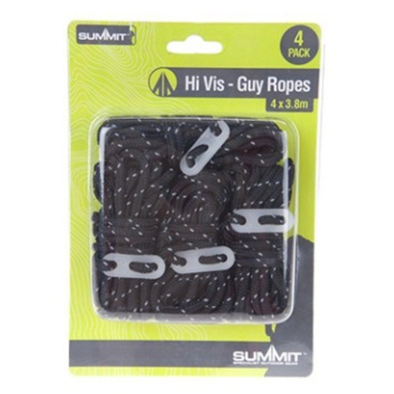 - Summit Black Hi Vis Tent Guy Ropes + Tensioners Pk4