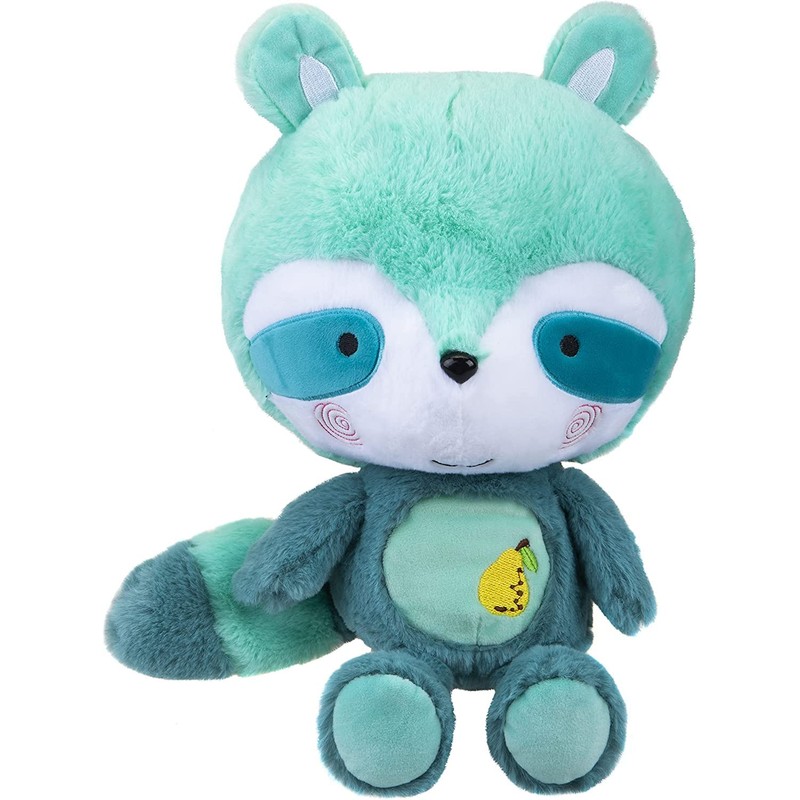 PMS - Raccoon Pear Scented Plush - Super Soft & Fluffy Turquoise 26cm Fruity Enchanted Forest Animal Brightly Coloured Sensory Cuddly Toy - Scentsations