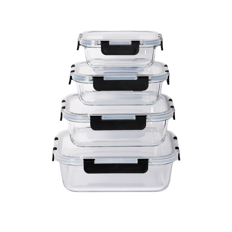 - VERSATILE SET: Complete 4-piece glass food storage container set with secure airtight locking lids, perfect for meal prep and leftover storage