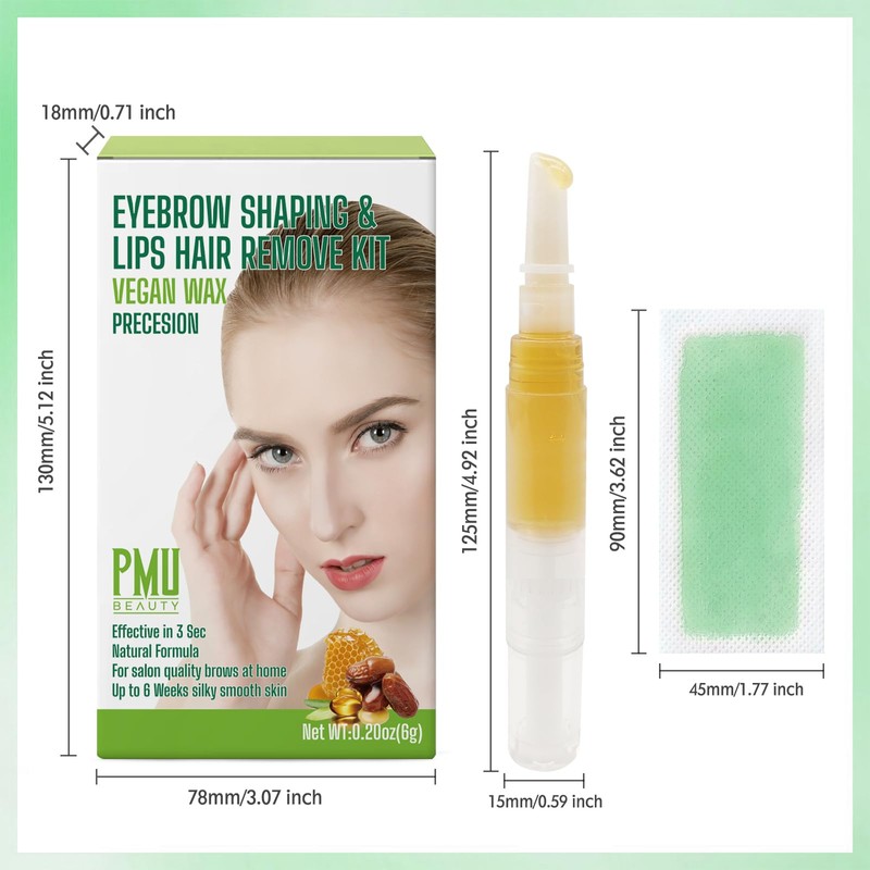 PMUBEAUTY Eyebrow Shaper Wax Kit for Women Eyebrow Facial At-Home Hair Removal with 4 Counts Ready-to-Use Wax Strips for All Hair Types Delicate Areas Cotton Strips Cleansing Wipes 0.2 Ounce