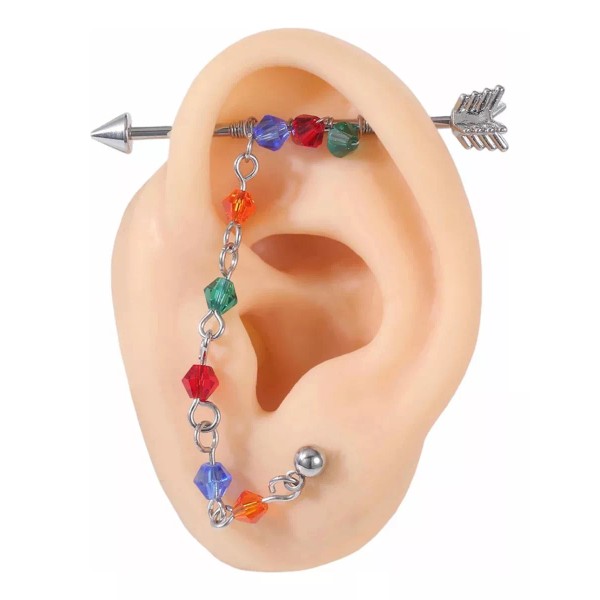 PMX Piercing Industrial Flecha Con Cadena, Arete Transversal 1pz