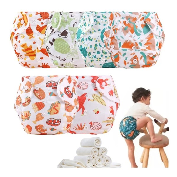 Pñales De Tela Ecologicos Para Bebé 6 Pañales + 6 Insertos