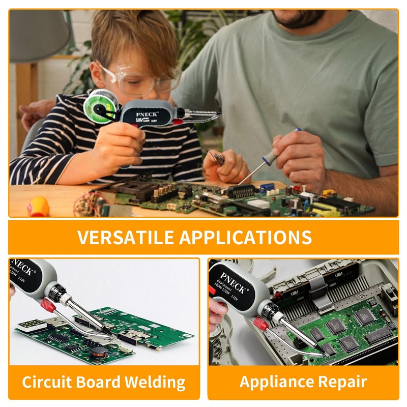 PNECK Automatic Soldering Gun Kit, 100W/120W Dual Power Soldering Iron Kit with Ceramic Heater, 5 Tips, Pump, flux, Tweezers for Electronics Welding Repair DIY